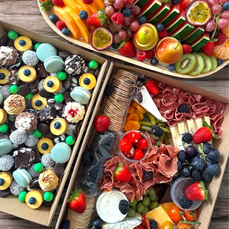 A gourmet experience in a convenient, beautifully packed box. Featuring a selection of premium cheeses, artisan meats, fresh fruits, crisp crackers, and delightful accompaniments, this box is perfect for sharing or gifting. Whether for picnics, office lunches, celebrations, or a cozy night in, the PlatterJoy Classic Box delivers elegance and flavor in every bite—ready to enjoy anytime, anywhere.